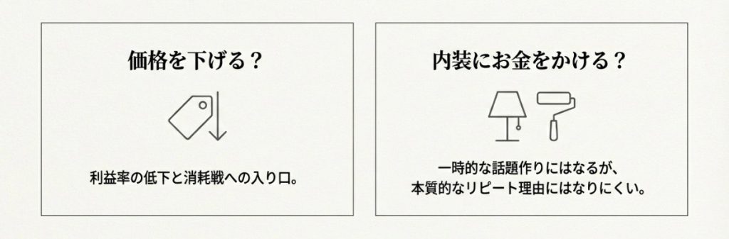 価格を下げるべきか、内装にお金をかけるべきか……。