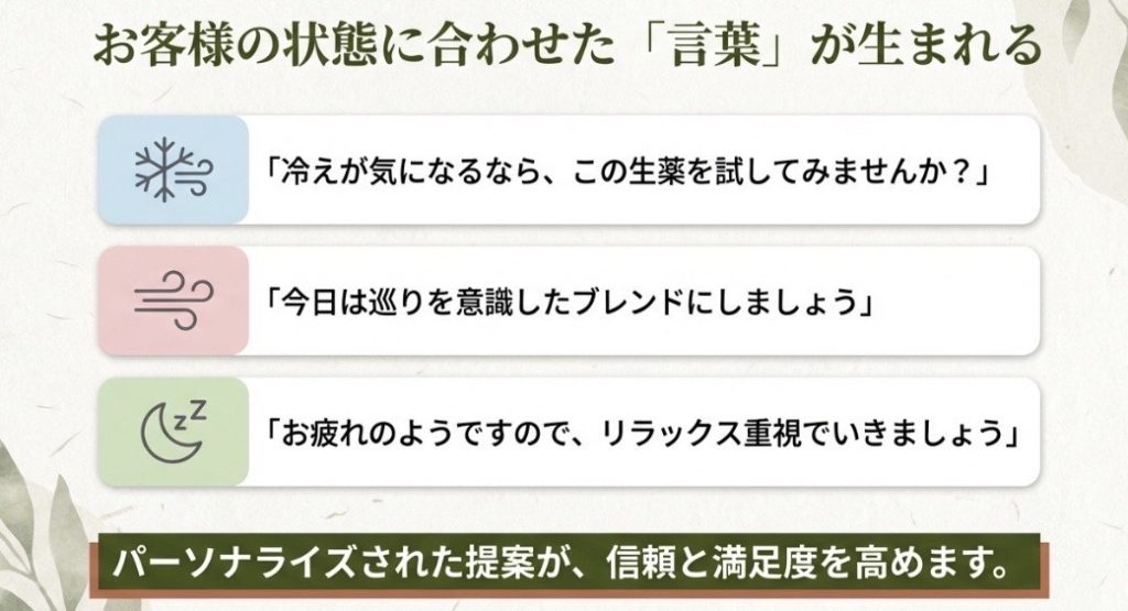 今までの「いつものにしますか?」という提案が、お客様に合った提案に変換できるようになります。