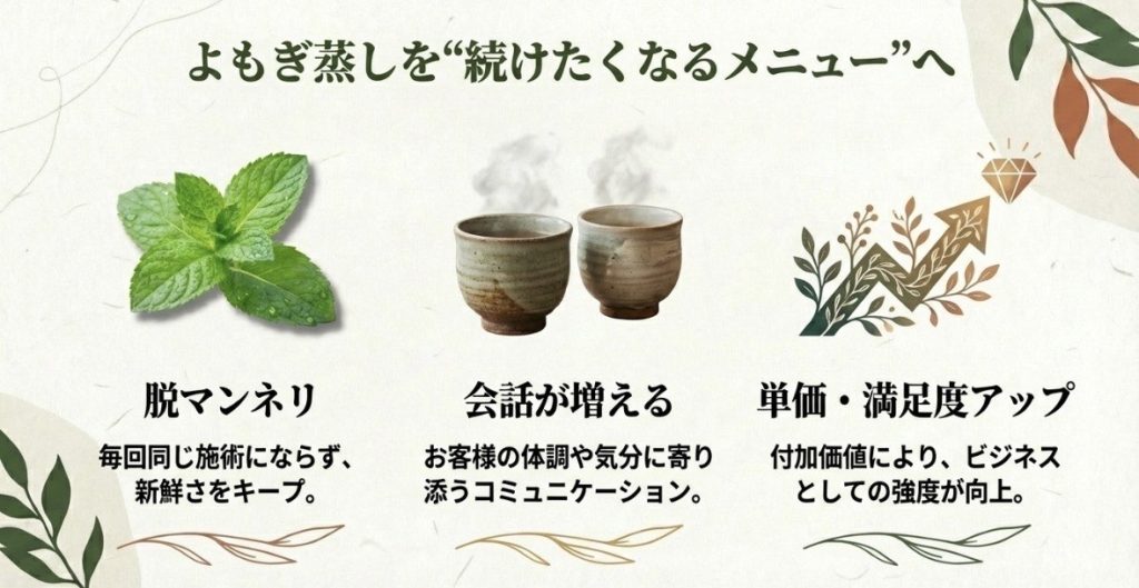 よもぎ蒸しを“続けたくなるメニュー”へ