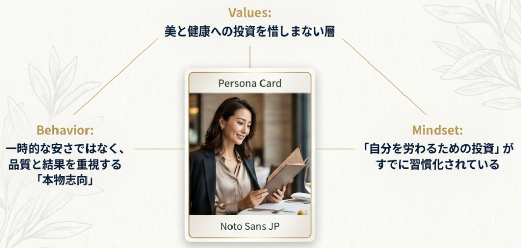 🟢高単価メニューへの理解: 「良いものには価値がある」と知っている層だからこそ、こだわり抜いたメニューをスムーズに受け入れてくれます。