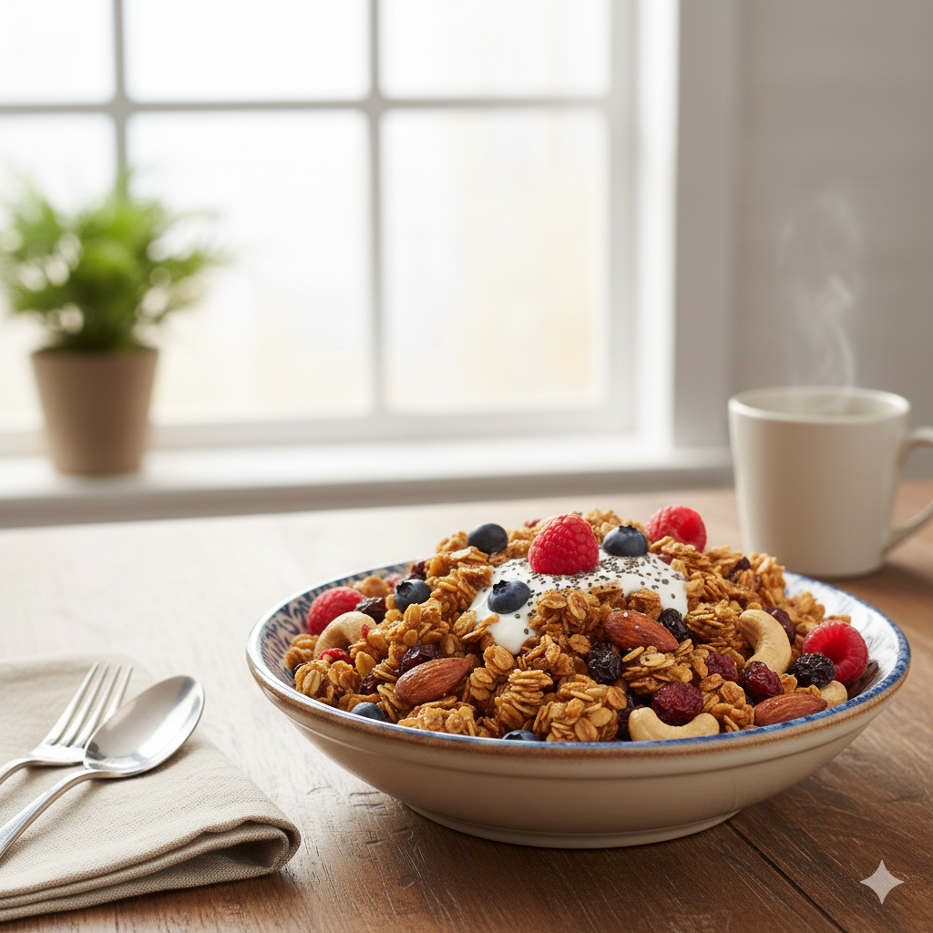 オーツ麦などは健康的ですが、市販のグラノーラの多くは、それらを植物性油脂と砂糖で固めて焼き上げたものです。さらにドライフルーツの糖質も加わり、朝から血糖値のスパイク(急上昇・急降下)を招き、昼前には猛烈にお腹が空く原因になります。