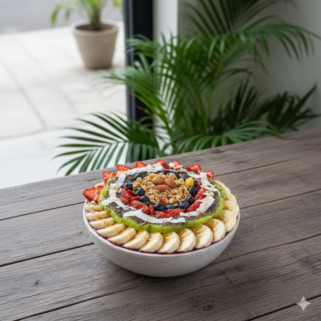 アサイー自体は抗酸化作用が高く素晴らしい食品です。しかし、お店で食べるアサイーボウルは、ベースに甘いシロップが混ざっていたり、大量のバナナやハチミツがトッピングされていたりします。